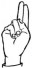 На ћирилици написано МАША ДАНГУБИЋ састоји се из 12 слова [?]. Исписано ћириличном једноручном азбуком за глувонеме: